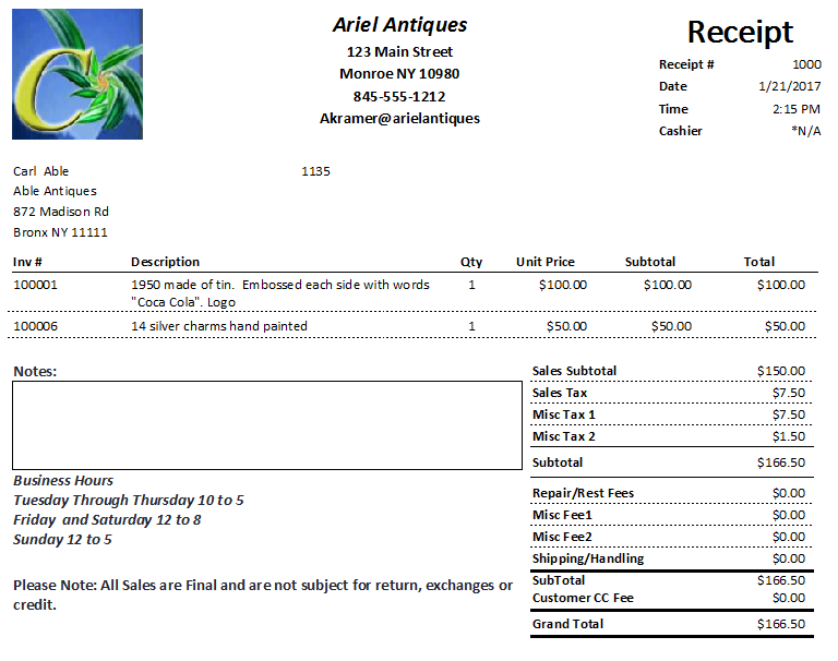 You can Print Receipts with an Ink Jet, Laser, Star TSP 100 or Dymo 450 Turbo Printer