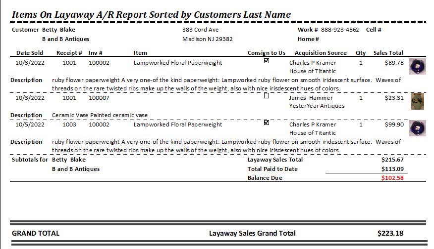 Within the Software you can run and track layaway receivables and run invoices to send to your customers to remind them payments is due.