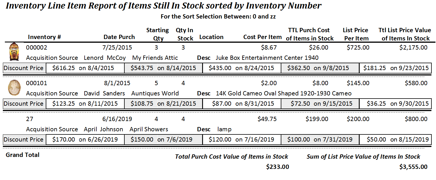 • Search Inventory in a variety of sorts including by Keyword | • Sell and Maintain Consignment Inventory all in one software | • Tracks and Prints Vendors without Sales |