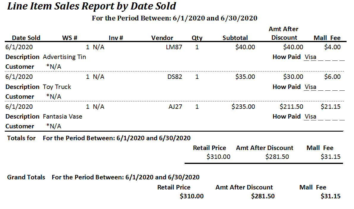 • Ability to Post Daily Sales Information On-Line For Your Vendors | • Automatically Calculates Taxes, Mall Fees, Credit Card Fees, Dicounts and More | • Ability to pass on Credit Card Fees to Your Customers rather than your Vendors, Dealers or Consignors. |