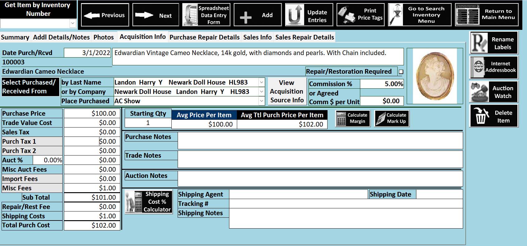 The Antique Dealer FastTrack Inventory and Business Management Software "Hera" TM