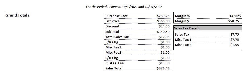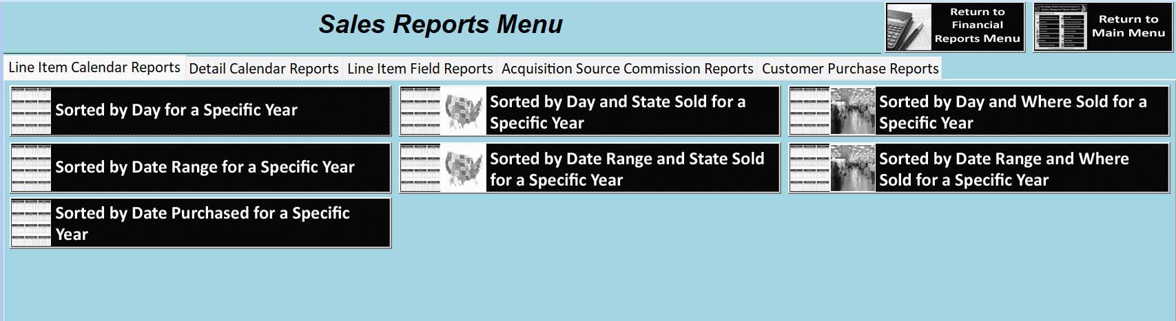 Sales Report Menu and Sample Sales Report