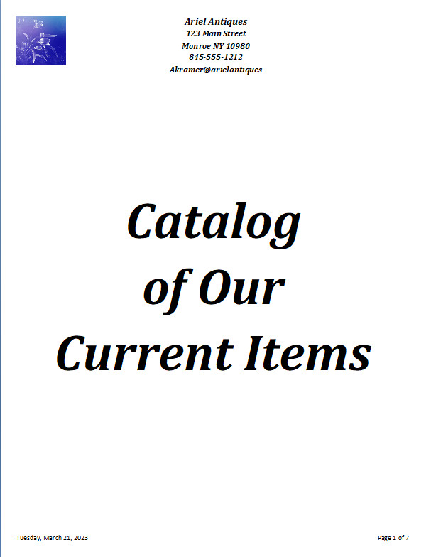 You can Print Catalogs directly from the software below is just a Sample of a Catalog