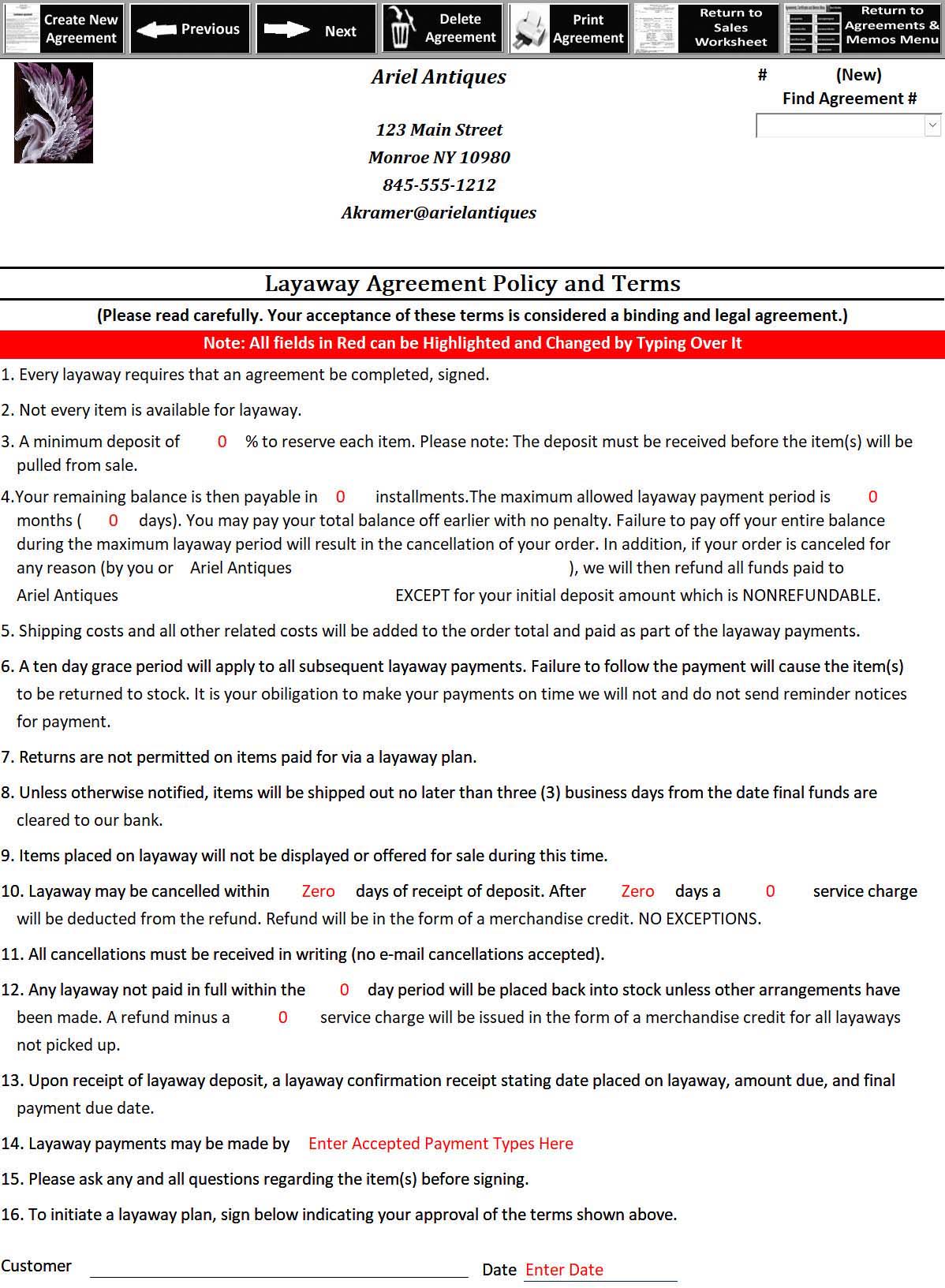 Another feature built into the software is the ability to do Layaway Agreements. You can easily Print and Track all Layaways.